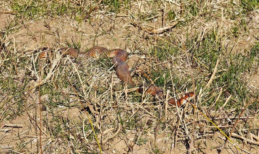 BİTLİS’İN TATVAN İLÇESİNE BAĞLI İNCEKAYA (POR) KÖYÜ KIRSALINDA GEZİNTİYE ÇIKAN DOĞA GEZGİNİ RIDVAN BÜTÜN, NADİR GÖRÜLEN KIRMIZI YILANI (DOLİCOPHİS SCHMİDTİ) GÖRÜNTÜLEDİ.