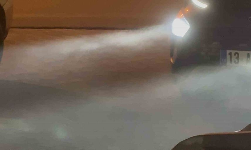 Bitlis’in Tatvan ilçesinde akşam saatlerinde etkisini artıran yoğun sis, ilçe genelinde görüş mesafesini önemli ölçüde düşürdü.