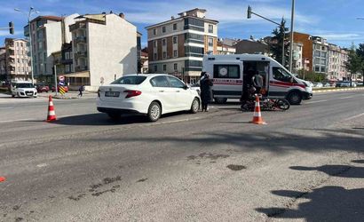 Edinilen bilgiye göre, Balıkesir istikametinden Kütahya yönüne seyir halinde olan R.D. yönetimindeki 34 FFV 346 plakalı otomobil ile Rabia Hatun Sokak'tan çevreyoluna çıkan E.K. idaresindeki 43 U 9516 plakalı motosiklet çarpıştı.