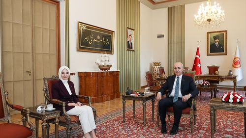 TBMM Başkanı Numan Kurtulmuş, Aile ve Sosyal Hizmetler Bakanı Mahinur Özdemir Göktaş'ı makamında kabul etti.