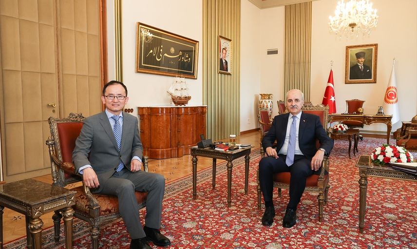 TBMM Başkanı Numan Kurtulmuş, Çin Halk Cumhuriyeti Ankara Büyükelçisi Jiang Xuebin'i kabul etti.
