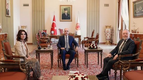 TBMM Başkanı Numan Kurtulmuş, DEM Parti Grup Başkanvekilleri Koçyiğit ve Temelli'yi kabul etti, Meclis'te komisyon kurulması gündeme geldi.