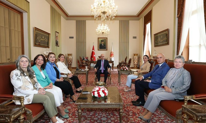 Türkiye Büyük Millet Meclisi (TBMM) Başkanı Numan Kurtulmuş, TBMM katip üyeleri, CHP Osmaniye Milletvekili ve CHP Kadın Kolları Genel Başkanı Asu Kaya, CHP Trabzon Milletvekili Sibel Suiçmez, CHP Giresun Milletvekili Elvan Işık Gezmiş ile CHP Bursa Milletvekili Nurhayat Altaca Kayışoğlu, CHP Ankara Milletvekili Aliye Timisi Ersever, CHP Tekirdağ Milletvekili Nurten Yontar ve İYİ Parti Grup Başkanvekili Turhan Çömez'i kabul etti.