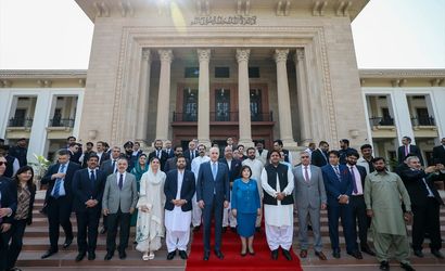 TBMM Başkanı Numan Kurtulmuş (sol 3), "Azerbaycan, Pakistan ve Türkiye Üçlü Parlamento Başkanları Toplantısı” dolayısıyla bulunduğu Pakistan’ın Lahor kentinde, Pencap Eyalet Meclisi'ni, Azerbaycan Milli Meclisi Başkanı Sahiba Gafarova (sağ 3) ile ziyaret etti. Pencap Eyalet Meclisi Başkanı Malik Muhammed Ahmed Khan (sağ 2), ziyarette ev sahipliği yaptı.
