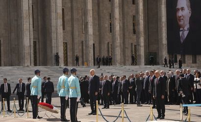 28. Dönem 4. Yasama Yılı açılışı dolayısıyla Meclis'teki Atatürk Anıtı önünde tören yapıldı. TBMM Başkanı Numan Kurtulmuş'un anıta çelenk bırakmasının ardından bando eşliğinde saygı duruşunda bulunularak, İstiklal Marşı okundu.