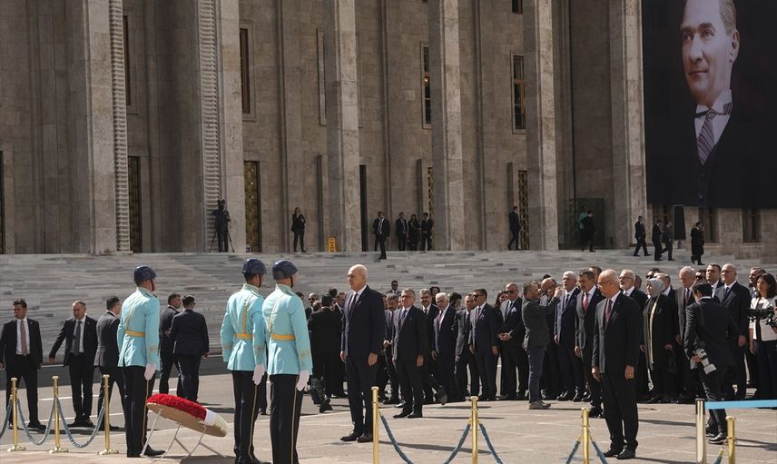 TBMM Başkanı Numan Kurtulmuş anıta çelenk bıraktı; ardından bando eşliğinde saygı duruşunda bulunularak İstiklal Marşı okundu.