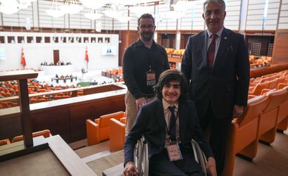 TBMM Genel Kurulunda, engelli bireylerin toplumsal hayata katılmalarının güçlendirilmesi, karşılaştıkları sorunların tespit edilmesi ve bu sorunlara kalıcı çözümler üretilmesi için Meclis Araştırma Komisyonu kuruldu. Bedensel engelli Yiğithan Kalfa (ortada), babası Murat Kalfa (solda) ve AK Parti Trabzon Milletvekili Vehbi Koç (sağda) ile araştırma komisyonun kurulması için Genel Kurulda yapılan görüşmeleri bir süre izleyici locasından takip etti.