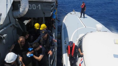 TCG Bozcaada karakol gemisi, teknedeki yaralı vatandaşa hızlı bir şekilde ilk müdahaleyi gerçekleştirdi ve kurtarıcı ekibe transfer etti.
