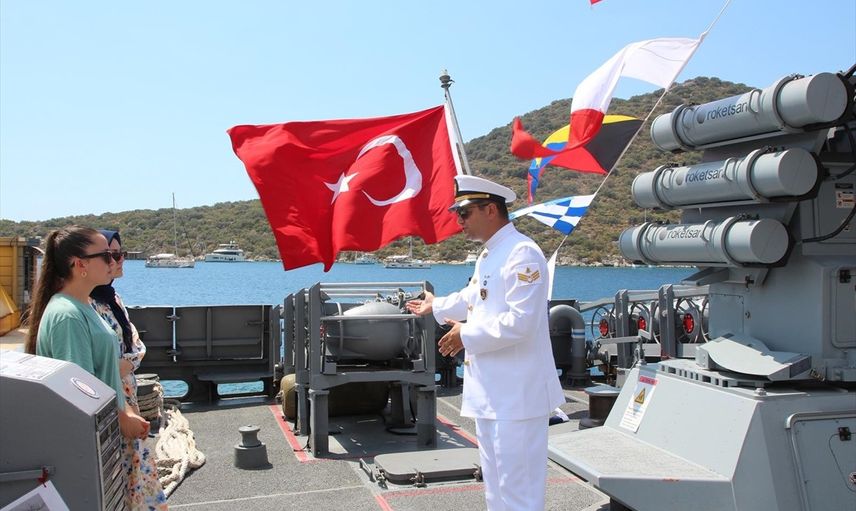 Antalya'nın Kaş ilçesine demirleyen TCG Kaş hücumbotu, 30 Ağustos Zafer Bayramı kutlamaları kapsamında halkı ağırladı.