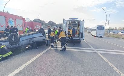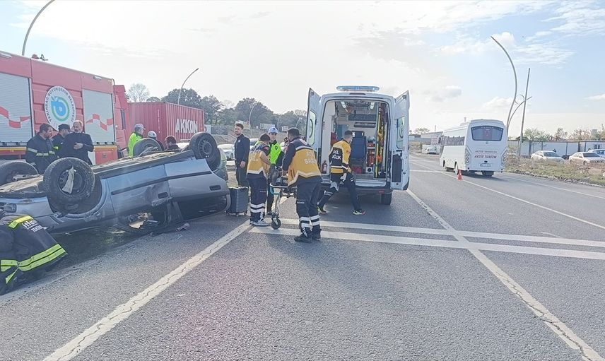 Tekirdağ'ın Çerkezköy ilçesinde bariyere çarparak devrilen otomobilin sürücüsü yaralandı.