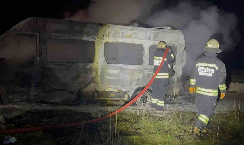 Tekirdağ'ın Çorlu ilçesinde, akşam saatlerinde Havuzlar Mahallesi Havuzlar Mezarlığı yakınlarında park halindeki bir panelvan minibüsten aniden alevler yükseldi.