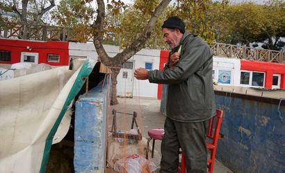 Denize açılamayan balıkçılar, Süleymanpaşa Balıkçı Barınağı'nda teknelerinin bakımını yapıp ağlarını onarıyor.