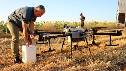 Tekirdağ'ın Muratlı ilçesinde çekirge popülasyonuna karşı ayçiçeği tarlalarında ilaçlama çalışmaları hız kazandı.