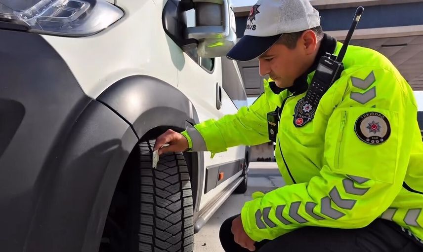 Tekirdağ İl Emniyet Müdürlüğü trafik ekipleri, 15 Kasım 2025 ile 15 Nisan 2026 tarihleri arasında yük ve yolcu taşıyan araçlarda kış lastiği kullanımının zorunlu olduğunu hatırlatarak denetimlerini sürdürdü.