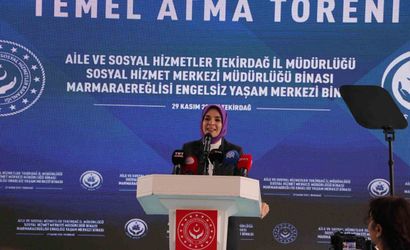 Tekirdağ’da Aile ve Sosyal Hizmetler Bakanı Mahinur Özdemir Göktaş, Aile ve Sosyal Hizmet Merkezi Müdürlüğü binası ile Marmaraereğlisi Engelsiz Yaşam Merkezi binasının temel atma törenine katıldı.