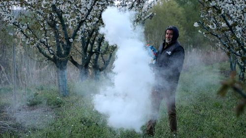 Tekirdağ'da meyve yetiştiricileri, zirai don riskine karşı gece boyunca bahçelerinde nöbet tutarak ürünlerini korumaya çalışıyor.