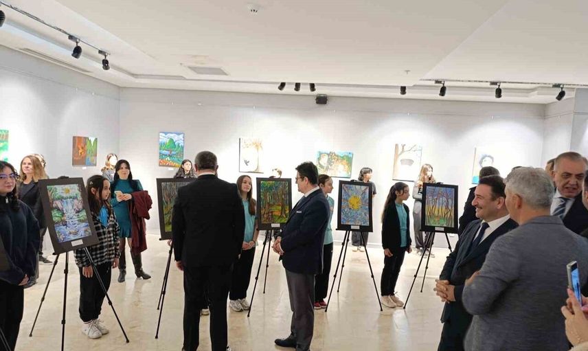 Kent genelindeki okullarda öğrenciler tarafından hazırlanan çevre ve orman temalı çalışmalar arasından seçilen 25 eser, sergi çerçevesinde ziyaretçilerin beğenisine sunuldu.