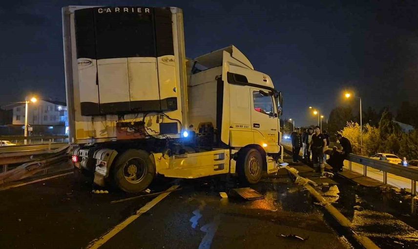 Tekirdağ-İstanbul yolunda tır bariyerlere çarptı: Trafik kapandı