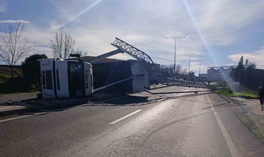 Tekirdağ Muratlı'da Açılan Kamyon Damperi Direkleri Yıktı