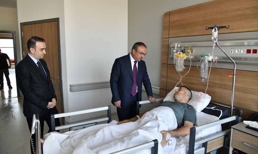 Tekirdağ Valisi Recep Soytürk, "dur" ihtarına uymayan cipin çarpması sonucu yaralanan polis memuru Recep Budak'ı hastanede ziyaret etti.