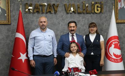 Hatay Valisi Mustafa Masatlı, küçük sanatçıyı ödüllendirdi