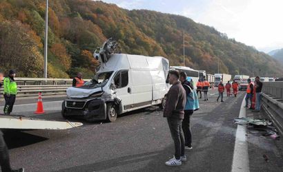 Meydana gelen çarpışma sonucu panelvan otoyolda devrildi ve yan yatan araç içindeki sürücü A.Y. yaralandı.