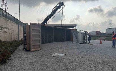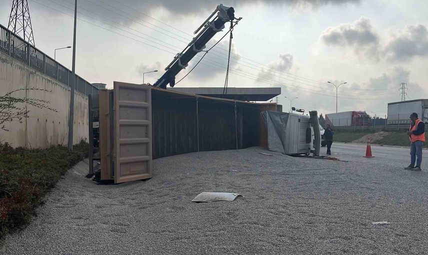 TEM Otoyolu Kocaeli'de mıcır yüklü kamyon devrildi: 1 yaralı