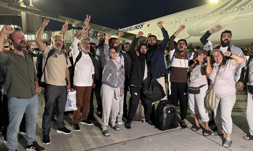 İsrail tarafından uluslararası sularda saldırıya uğrayıp alıkonulan Küresel Sumud Filosu bünyesindeki 15 Türk vatandaşı aktivisti taşıyan Türk Hava Yolları (THY) uçağı, İstanbul Havalimanı'na indi. Aktivistler VIP salonda aileleri ve yetkililer tarafından karşılandı.