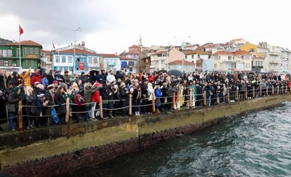 Yaklaşık 3 saat süren ayinin ardından Metropolit Maksimos Vgenopulos ve ayine katılanlar kortej halinde Tirilye sahiline yürüdü. Yeni yıl dolayısıyla soğuk havada gerçekleştirilen törende, kurdeleye bağlı olarak denize atılan haç için tekneden 7 kişi soğuk ve dalgalı denize atladı.