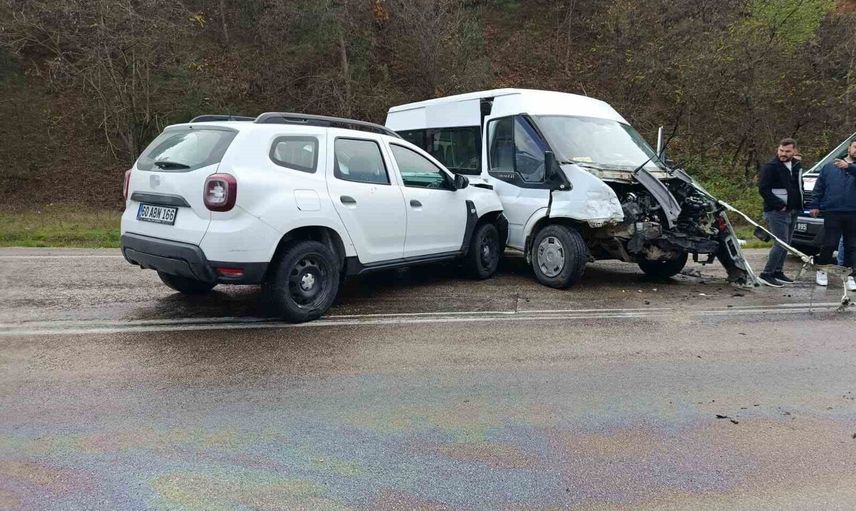 NİKSAR İLÇESİNDE 2 MİNİBÜS VE 1 OTOMOBİLİN KARIŞTIĞI ZİNCİRLEME KAZADA 1’İ ÇOCUK 9 KİŞİ YARALANDI