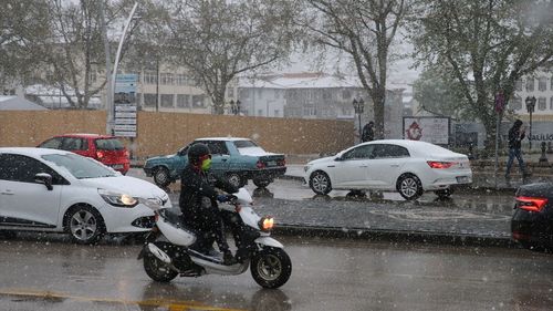 Tokat-Sivas kara yolunda kar yağışı nedeniyle yollar kayganlaşırken, ekipler kar küreme ve tuzlama işlemleri gerçekleştiriyor.