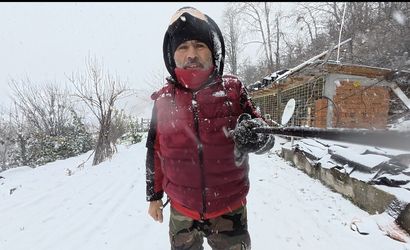 Yaylada küçükbaş hayvanlarıyla bulunan bir çoban, kar yağışını türkü söyleyerek karşıladı. O anlar cep telefonu kamerasıyla kaydedildi ve görüntüler izleyenlere renkli anlar sundu.