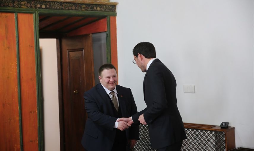 Tokat Belediye Başkanı Mehmet Kemal Yazıcıoğlu'nun (sağda) özel kalem müdürü, temsili olarak down sendromlu Ethem Ay (solda) oldu.
