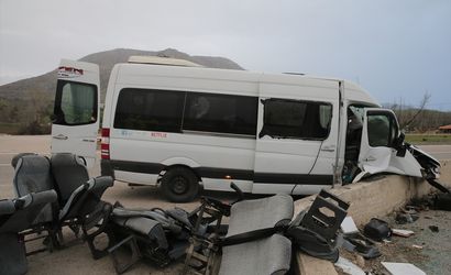 Tokat'ta işçi servisinin istinat duvarına çarpması sonucu 15 kişi yaralandı. İhbar üzerine kaza yerine jandarma, itfaiye ve sağlık ekipleri sevk edildi.