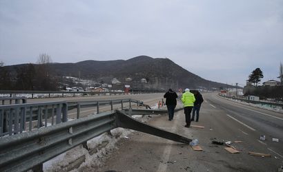 Tokat'ta bariyerlere çarparak karşı şeride geçen pikaptaki 2 kişi yaralandı.