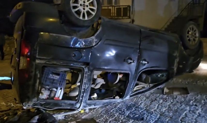 Sürücüsü öğrenilemeyen 60 ABR 967 plakalı Fiat marka hafif ticari araç, sürücünün direksiyon hakimiyetini kaybetmesi sonucu kontrolden çıkarak takla attı. Araç ters döndü ve içinde bulunan 5 kişi yaralandı.