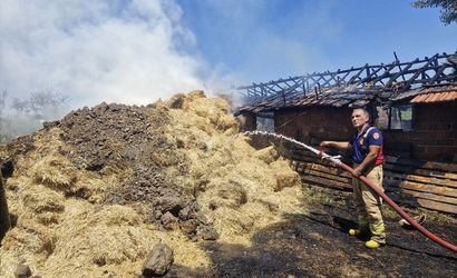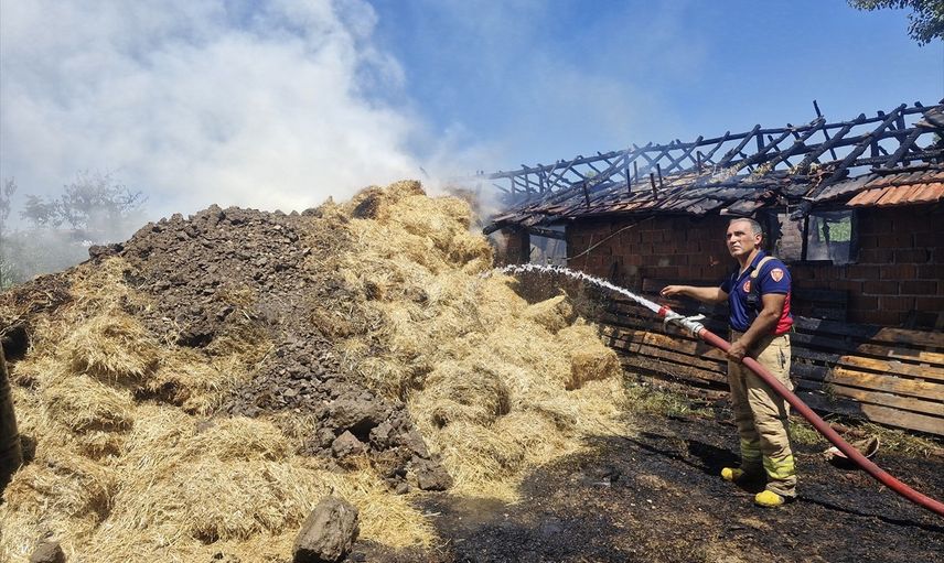 Yangında ahırda bulunan 7 büyükbaş hayvanın yanı sıra, 500 balya saman, 2 ton arpa ve buğday, sulama sistemi ve traktör de zarar gördü.