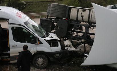 Tokat'ta yolcu minibüsü ile tırın çarpışması sonucu 5 kişi yaralandı.