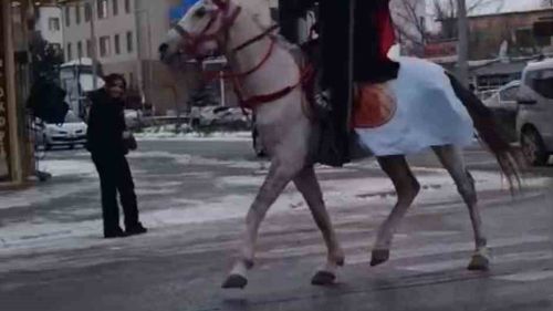 Tomarza esnafı Avni Bozkurt, sırtına Türk bayrağı ve elinde Göktürk bayrağıyla atına binip çarşıda tur attı; Nusaybin-Kamışlı'daki bayrak indirme olayını kınadı.