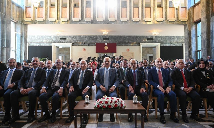 TBMM tarafından 1924 yılında İstiklal Madalyası'yla ödüllendirilen Trabzon'a verilecek "İstiklal Madalyası" için Meclis Şeref Holünde tören düzenlendi. Törene TBMM Başkanı Numan Kurtulmuş (ortada), Milli Savunma Bakanı Yaşar Güler (sol 4), Ulaştırma ve Altyapı Bakanı Abdulkadir Uraloğlu (sağ 4) ve Trabzon Valisi Aziz Yıldırım (sağ 2) da katıldı.