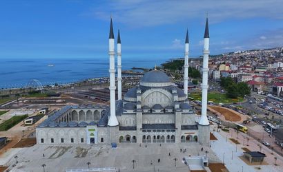 Trabzon'un, Ortahisar ilçesinde 11 Temmuz Cuma günü açılması planlanan ve 13 bin kişinin ibadet edeceği Hanife Hatun Camisi'nde çalışmalar sürüyor.