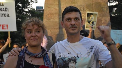 İstanbul'da hayatını kaybeden Mattia Ahmet Minguzzi için Trabzon'da düzenlenen yürüyüşte, desteklenen annesi ve babası duygusal anlar yaşadı.