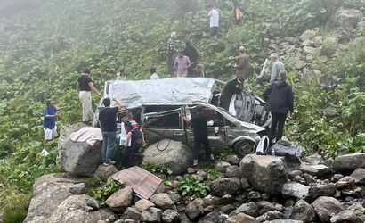 Trabzon'un Çaykara ilçesinde panelvanın uçuruma yuvarlandığı kazada 2 kişi hayatını kaybetti, 4 kişi de yaralandı.