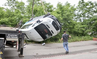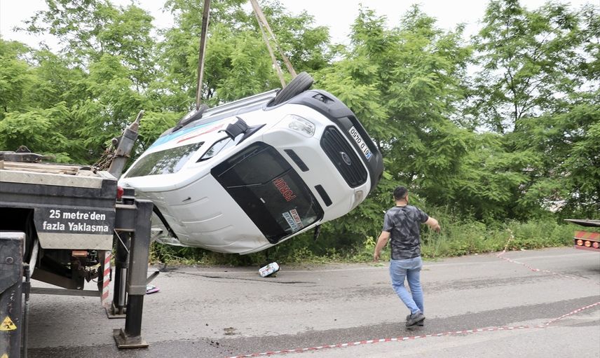 Trabzon'da park halindeki minibüsün, yolcu aldığı sırada kayarak şarampole devrilmesi sonucu 5 kişi yaralandı. Olay yerine itfaiye, polis ve 112 Acil Sağlık ekipleri sevk edildi.