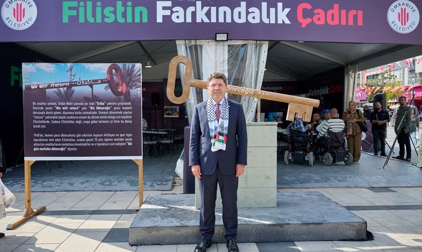 Adalet Bakanı Yılmaz Tunç, İstanbul'da Ümraniye Belediyesi tarafından kurulan Filistin Farkındalık Çadırı'nı ziyaret etti.
