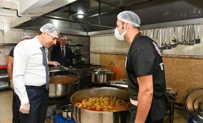 Tunceli’de yürütülen çalışmalar kapsamında, ihtiyaç sahibi 333 kişiye her gün sıcak yemek ulaştırılıyor. Vali ve Belediye Başkan Vekili Şefik Aygöl (solda), Moğultay Mahallesi'ndeki Tunceli Belediyesi Aşevi'ni ziyaret ederek incelemelerde bulundu. Aygöl, ihtiyaç sahipleri için hazırlanan yemekleri tabaklara doldurdu.