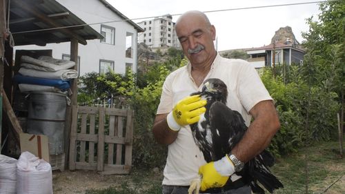 Tunceli'nin Çemişgezek ilçesinde bitkin bulunan bir kaya kartalı, koruma altına alındı ve tedavi edilecek.