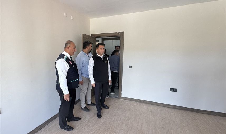 Tunceli Valisi ve Belediye Başkan Vekili Şefik Aygöl (sağda), Çevre, Şehircilik ve İklim Değişikliği Bakanlığı Toplu Konut İdaresi (TOKİ) Başkanlığınca İsmet İnönü Mahallesi'nde yapımı tamamlanan 214 konut ve 3 iş yerinde incelemelerde bulundu.