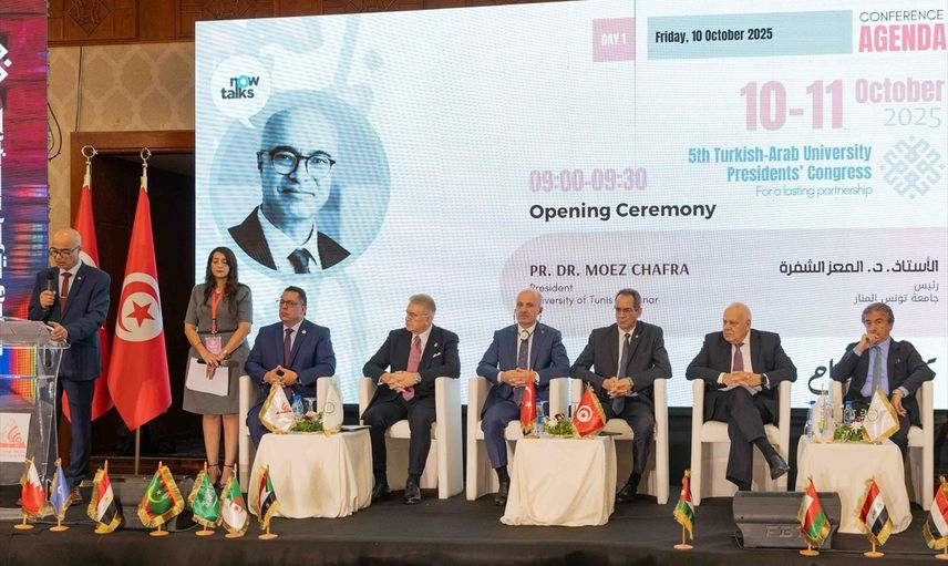 Arap Üniversiteler Birliği, Avrasya Üniversiteler Birliği ve Türkiye Cumhuriyeti Yükseköğretim Kurulu (YÖK) iş birliğiyle düzenlenen 5. Türk–Arap Üniversiteleri Kongresi, Tunus El Menar Üniversitesi’nin ev sahipliğinde başladı. Türkiye ve Arap dünyasından 100’ün üzerinde üniversite rektörü ile çok sayıda akademisyenin yer aldığı kongrenin açılışına, Tunus Yükseköğretim ve Bilimsel Araştırma Bakanı Tunus Yüksek Öğrenim Bakanı Munzer Belid, YÖK Başkanı Prof. Dr. Erol Özvar, Türkiye’nin Tunus Büyükelçisi Ahmet Misbah Demircan, Arap Bilimsel Araştırma Konseyleri Federasyonu Başkanı Prof. Dr. Abdulmecid Binamare, Arap Üniversiteleri Birliği Genel Sekreteri Amr ez-Zad Selam, Avrasya Üniversiteler Birliği (EURAS) Başkanı Prof. Dr. Mustafa Aydın, Tunus El Menar Üniversitesi Rektörü Muaz eş-Şefra katıldı.
