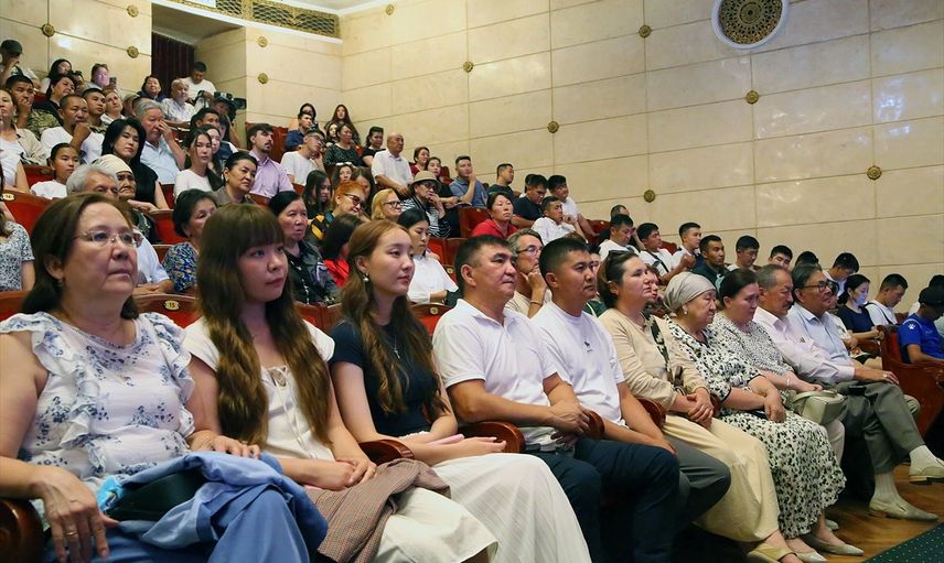 Kırgızistan Milli Opera ve Bale Tiyatrosu'nun senfoni orkestrası, Urmat Tentimişyev ve Zahar Butenko yönetiminde sanatçılara eşlik ederken, izleyiciler konserde büyük bir heyecan yaşadı.
